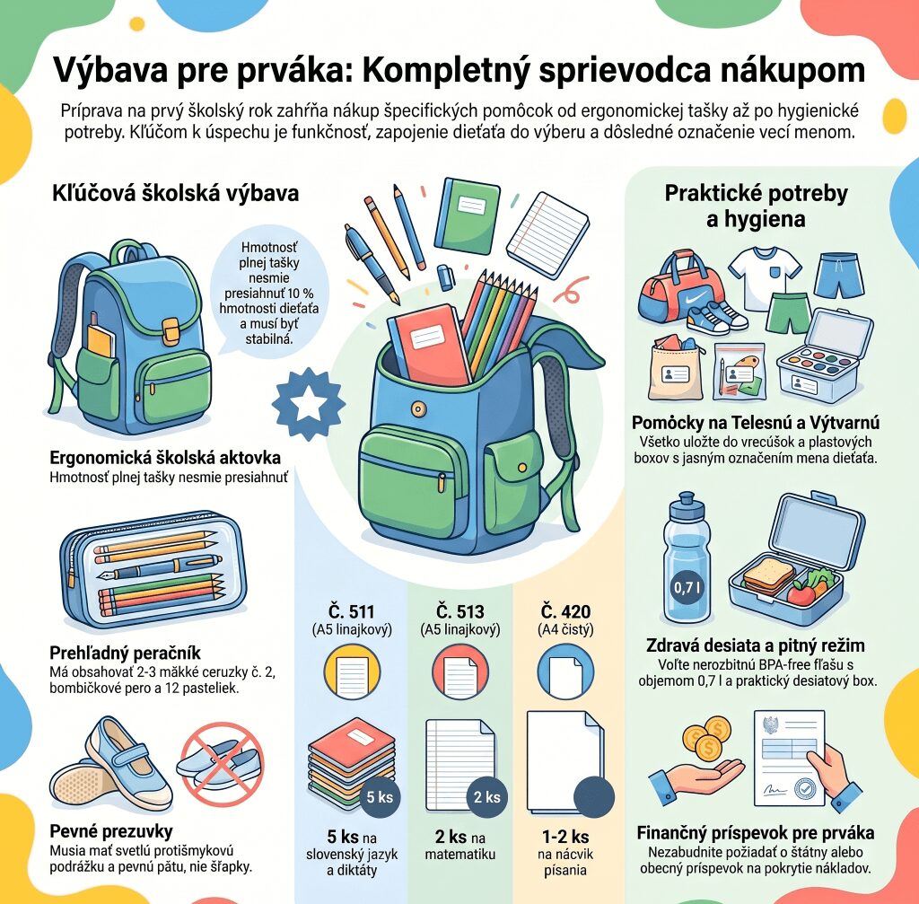 Bude lepšie si to skontrolovať, prípadne si počkať na kompletný septembrový zoznam, no vo všeobecnosti platí, že prvák bude potrebovať nasledovné: