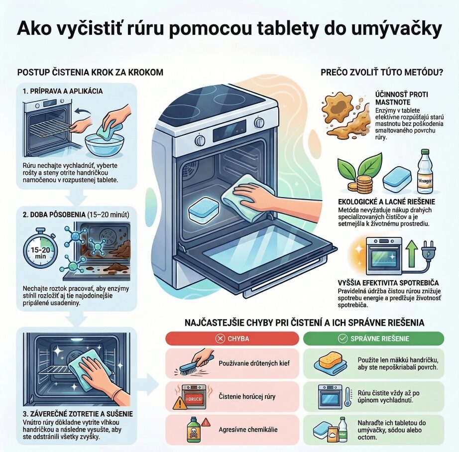 Je bezpečné použiť tabletu do umývačky riadu na čistenie vnútra rúry?