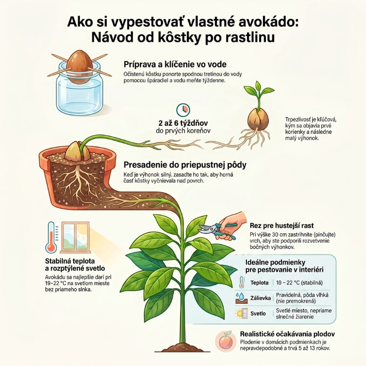 Aké sú ideálne podmienky pre pestovanie avokáda (svetlo, teplota, vlhkosť) v domácich podmienkach?