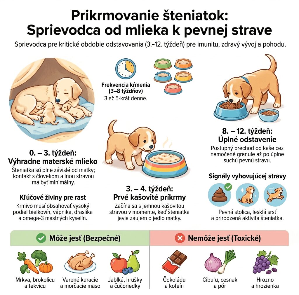 V prvých troch týždňoch sú šteniatka plne odkázané na mamu. To sa týka aj ich stravovania. Správne načasovanie zavádzania pevnej stravy do jedálnička šteniatok pomôže predísť tráviacim problémom, slabej imunite, podvýžive, ale aj nesprávnemu vývinu kostí, svalstva a mnohým iným zdravotným problémom v dospelosti. Príliš skoré odstavenie od materského mlieka môže spôsobiť rôzne tráviace problémy, ako napríklad hnačka a bolesti brucha.