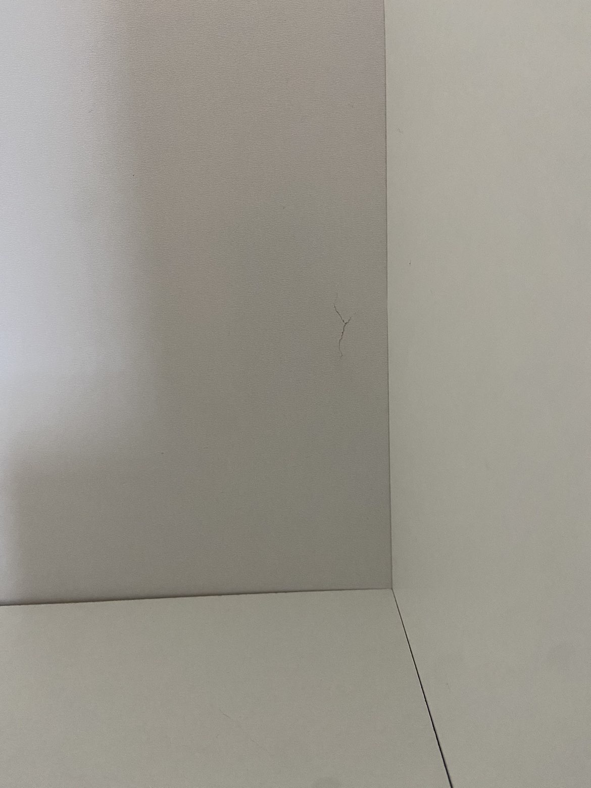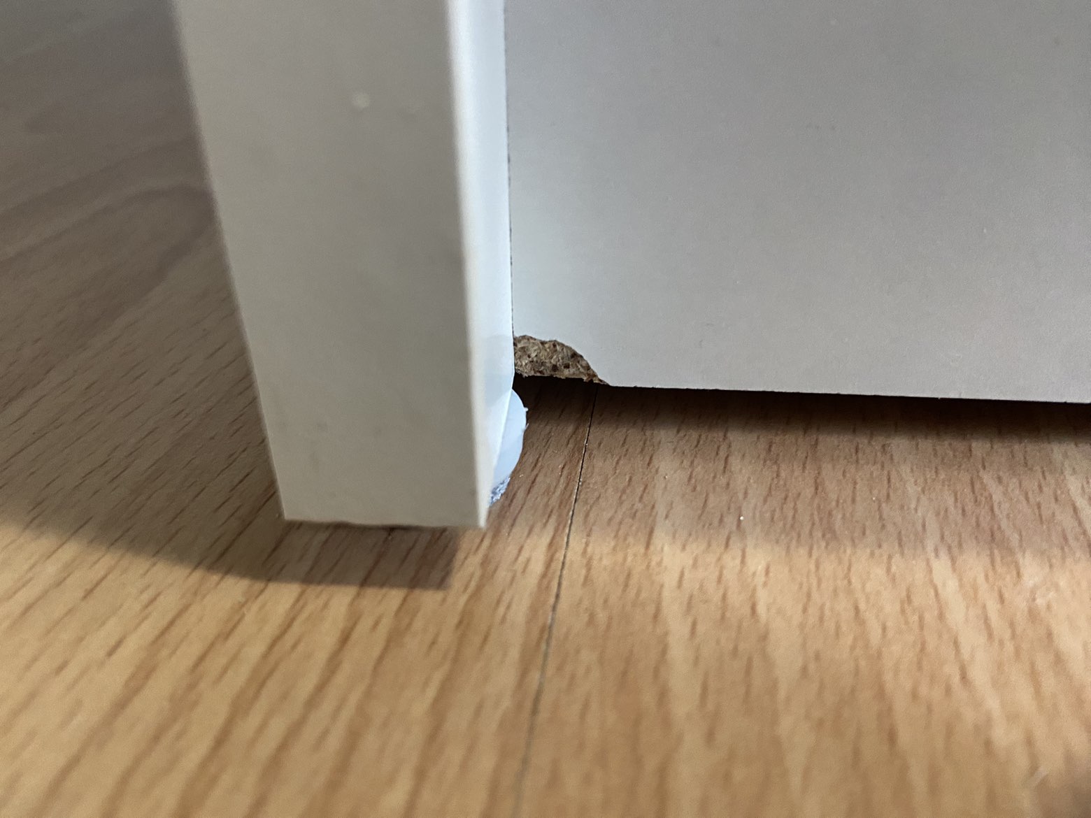Kúpili sme biele šatníkové skrine, náter skrine je hrozný, vyzerajú lacno a opotrebovane, hrany na jednotlivých častiach skrine sú povylámované, na zadnej časti skrine sa vytvorila prasklina, prasklina bola aj na jednej z políčok, ďalšia polička bola poškrabaná od šrúb, ktoré boli súčasťou balenia.